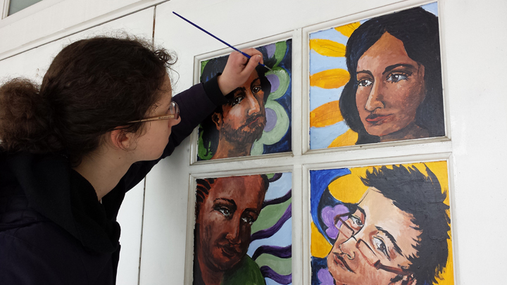 The Niles North National Art Honor Society (NAHS) lent their talents to create a beautiful mural that is on display at Westfield Old Orchard Mall in Skokie. Ten NAHS students designed the whimsical mural with painted peacocks, flowers, floating alpacas, faces and intricate abstract designs. The mural graces the windows of an empty storefront across from Anthropologie on the north side of the mall. Artists include: Luca Ferincz, Stella Gellar, Anna Poloz, Faisal Warsani, Emily Moy, Sally Lavengood, Aisha Khan, Brittaney Chang, Serena Hocharoen and Corie Adams.