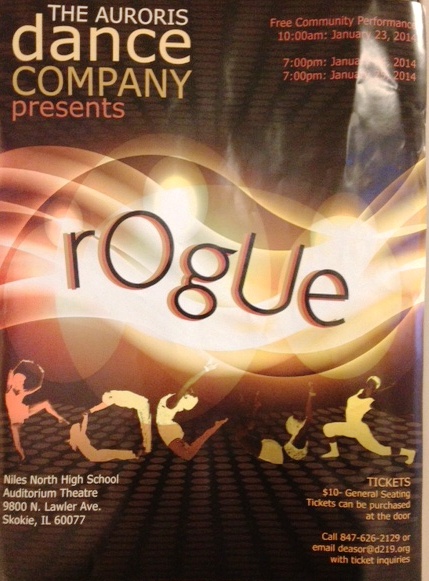 The 2013-2014 Auroris Dance Company presents “rOgUe” January 23-25 in the Niles North Auditorium at 9800 North Lawler, Skokie. There will be a free community performance at 10 a.m. on Thursday, January 23. Other showtimes are at 7 p.m. on Friday, January 24and Saturday, January 25. Tickets may be purchased at the door for $10. Tickets can also be reserved in advanced by contacting Deanna Sortino at deasor@d219.org or 847-626-2129. The dancers will be performing different styles of dance including jazz, modern, hip-hop, tap, Broadway, ballet, and tango!